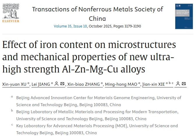 铁含量对新型超高强Al–Zn–Mg–Cu合金显微组织与力学性能的影响